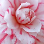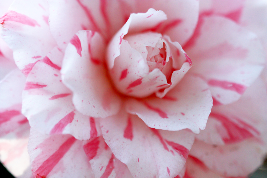 - オトメツバキの花芯です。花の開き方が少々足りなく花弁の重なりにスキマが多いです。もう少し開いた花を狙うと良いです。