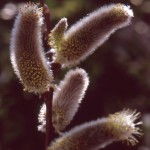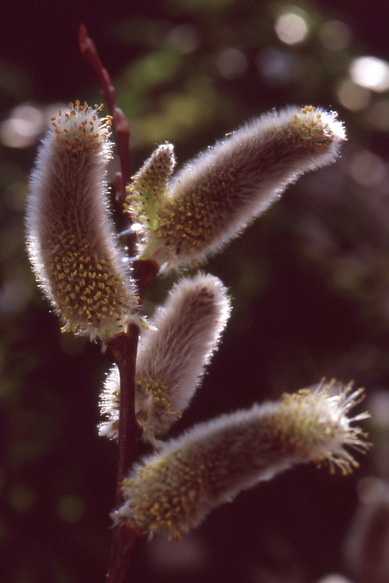 - ネコヤナギの花です。銀色の穂先はよく見るのですが、花はなかなか見ることがないです。黄色のシベが可愛いです。