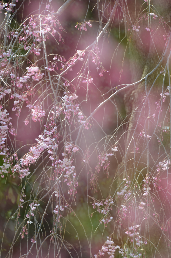 - シダレサクラを多重露出で撮っています。前ボケを大きく入れてソフトに仕上げています。ファンタスティックでウルサくなりがちな枝を上手く抑えています。