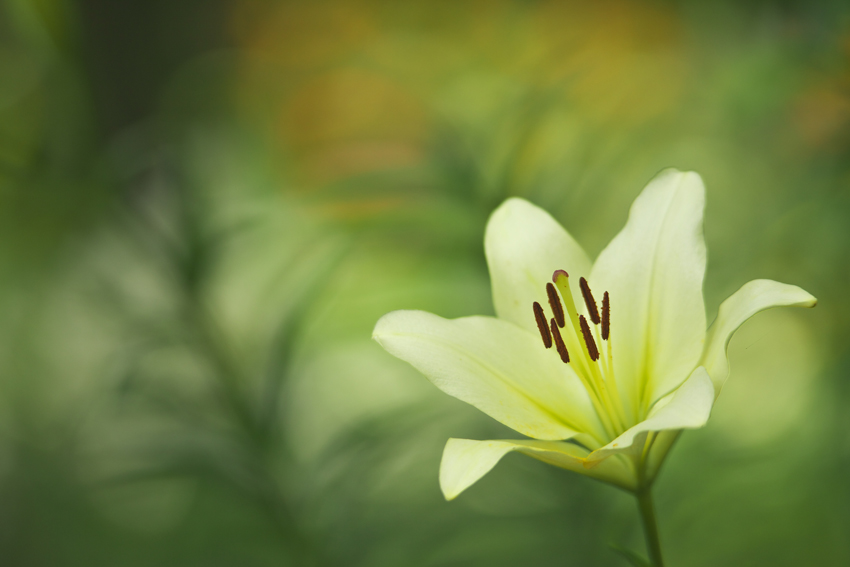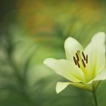 - ユリの葉をボケにして少しワイルド作ってみました。ズームの望遠で背景のボケを出してみました。