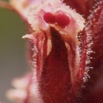 - 名前は判りませんが赤い房が炎のように立ち上がってドラマチックな花です。もっと広く撮っていたのですが、よく見ると花の部分が赤い目をした動物の様に見えます。トリミングをしたらグッと迫って来ました。