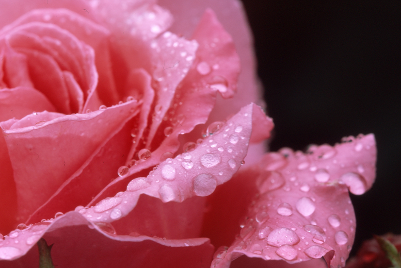 - バラの水滴を撮っているのですが、バラも見せたい、水滴も見せたいと少々欲張りになっています。この場合右下の水滴の部分だけをアップにして切り取ります。このとき絞りをf11〜16にしてシャープに表現します。