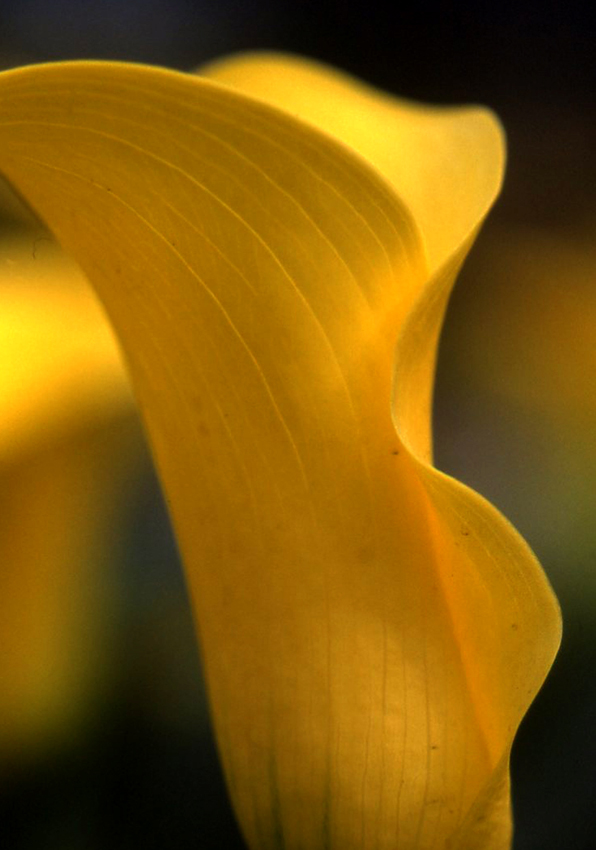 - カラーは花のオブジェとしてよく撮ります。しなやかなカーブが美しく優美な姿がエレガントです。花全体を撮っていますが、もっとアップで右のカーブを強調するようにトリミングするともっと心象的になります。