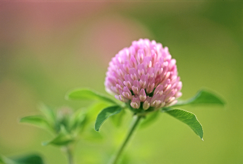 - やさしい色のアカツメクサです。花下の葉を形よく入れて同じ花をボケにしてキレイな背景に仕上げています。木村さん独特のやさしい雰囲気を出していて見ていて飽きない作品になっています。