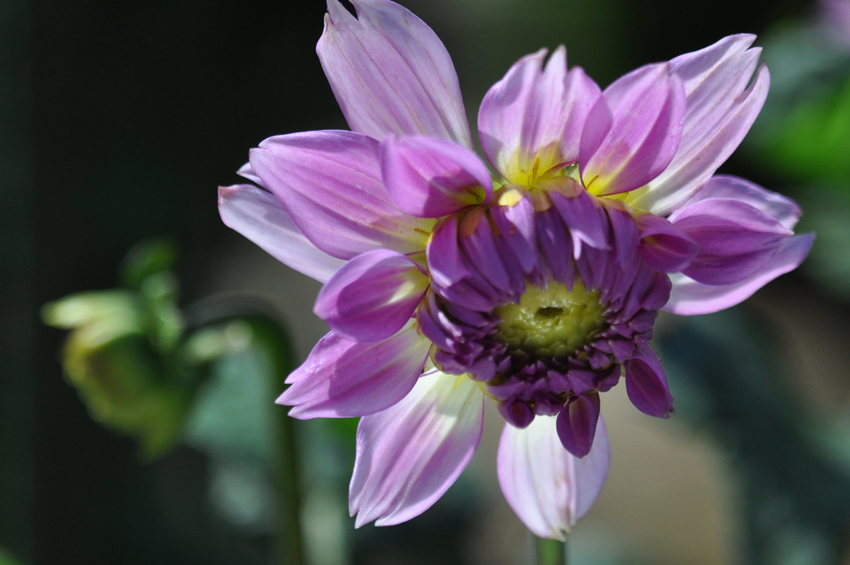 - 上條さんはダリアを好んで撮っています。花弁が光で透けて光ってキレイです。ツボミのボケの入れ方もいいです。少々アップにしすぎました。