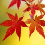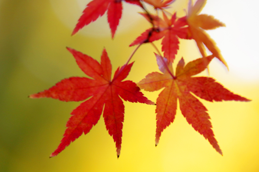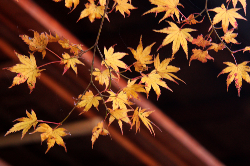 - キレイな紅葉です。少々ピントが甘いのですが、紅葉の選び方、配置、背景のグラデーションがキレイです。