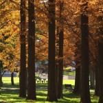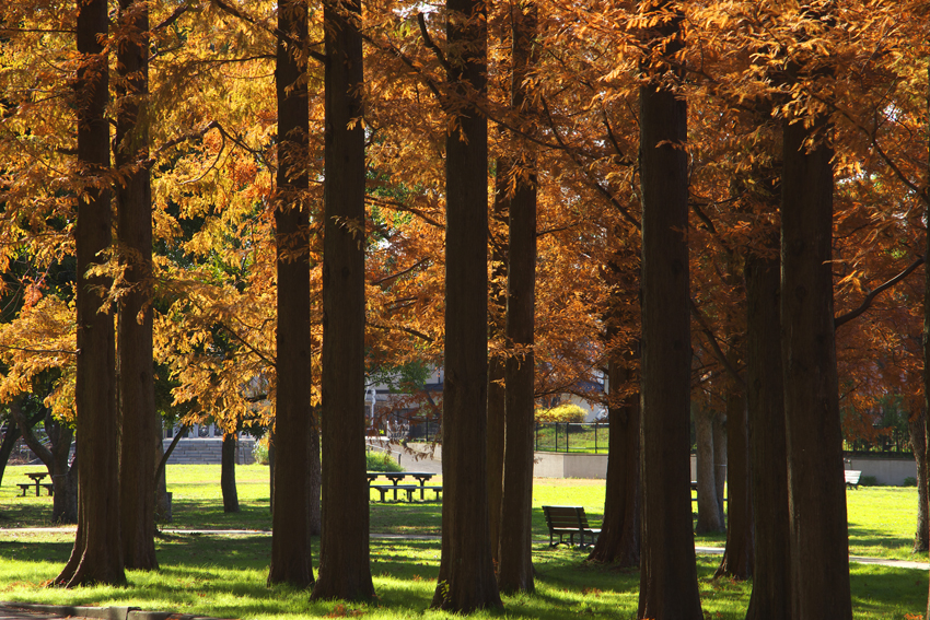 - 水元公園のメタセコイアの黄葉です。色付いたメタセコイアが光に輝いていました。光が強く影が強く出る時は逆光で撮るようにします。