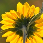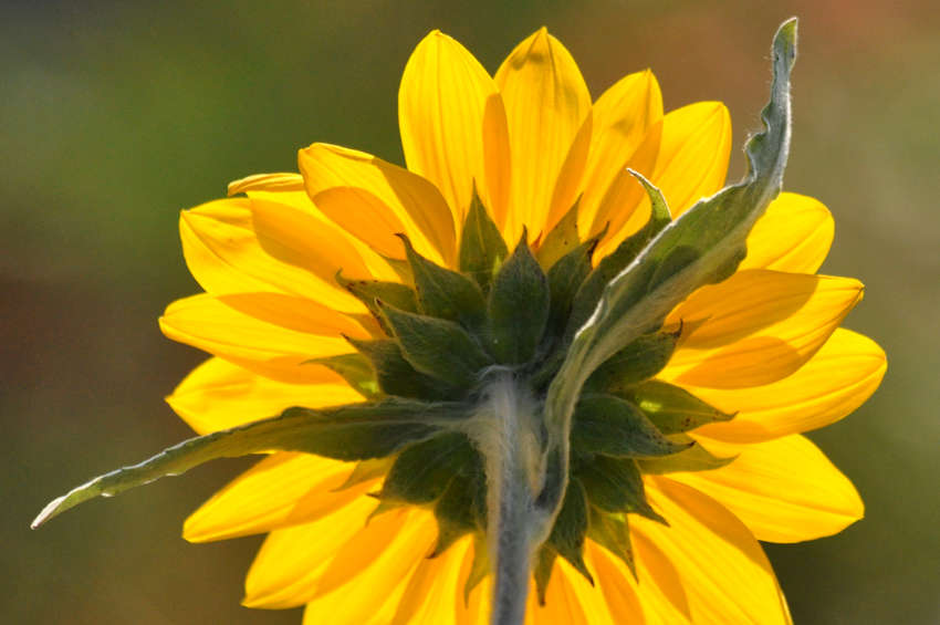 - 背中から撮ったヒマワリでまたこのような取り方も面白いですね、葉が手を広げてダンスをしているようでユーモラスです。