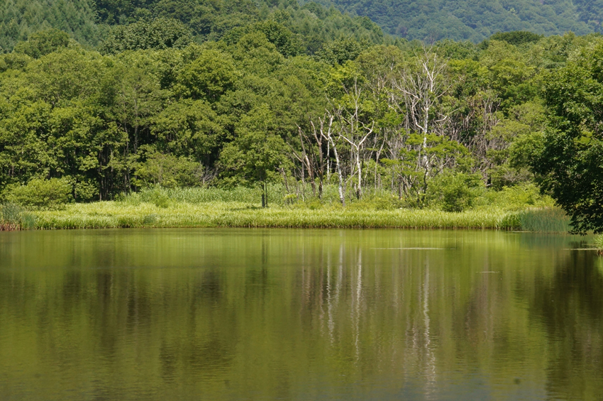 - 戸隠鏡池です。これを撮った時期と時間がイマイチ、湖面に樹々の映り込みがありますが風があって湖面が波立ち鏡池の美しい特徴が出ていません、ここを撮るのはやはり早朝に限ります。