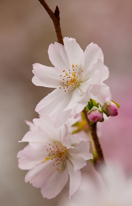 - 可愛い十月桜(冬桜)です。背景をキレイにボカして右下のピンクのボケがこの画面を優しくしています。冬のサクラなのに何か暖かさを感じる作品になっています。