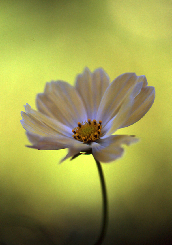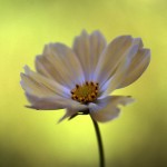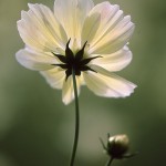 - コスモス(イエローガーデン)です。薄黄色の花弁が光に透けています。コスモスの後ろ姿は中々キレイで写真になります。ツボミがいいアクセントになっています。