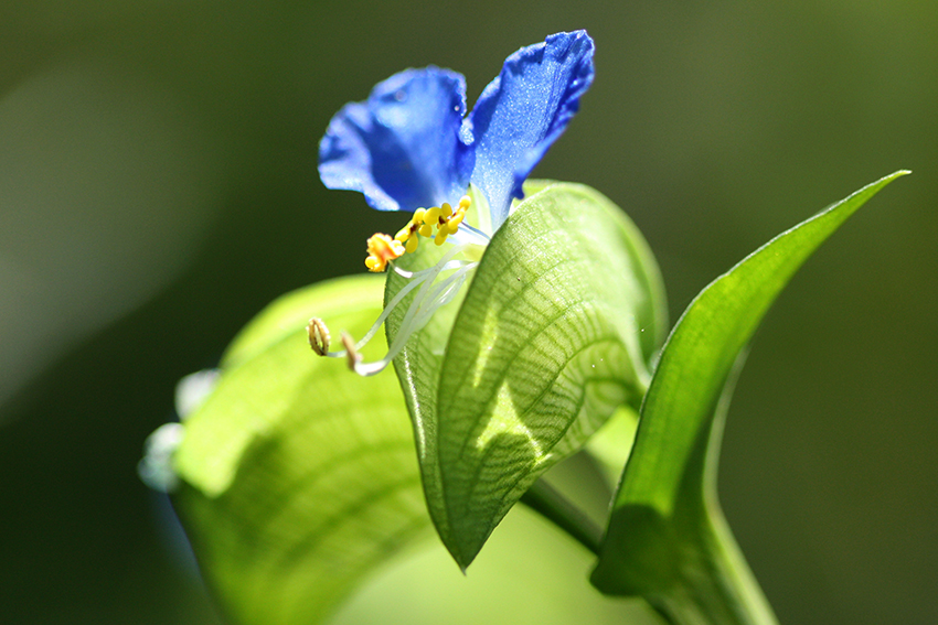 - 形の良いムラサキツユクサです。この花の特徴を上手く捉えています。右にピンと張った葉がこの画面を引き締めています。シベにしっかりとピントが合っていて気持ちのよい作品です。