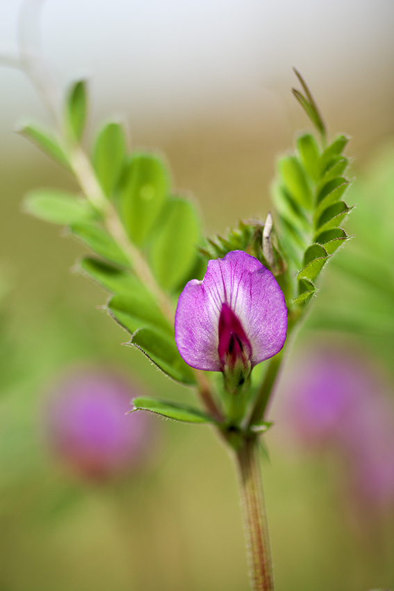 - 散歩の途中のカラスノエンドウを低い姿勢で後ろのボケになる花をポイントにして高さを調節しながら撮りました。