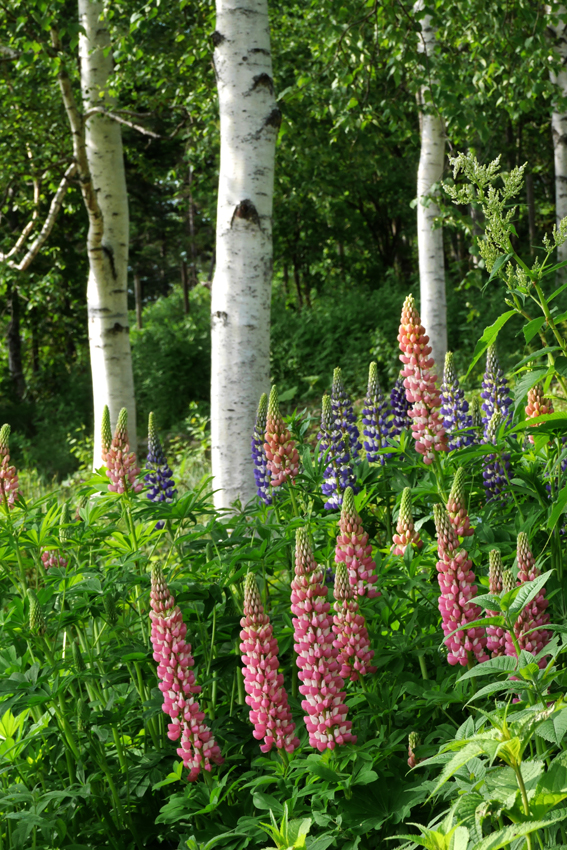 - ルピナスの野にシラカバがいいアクセントになっています。のびのびした野生を感じます。