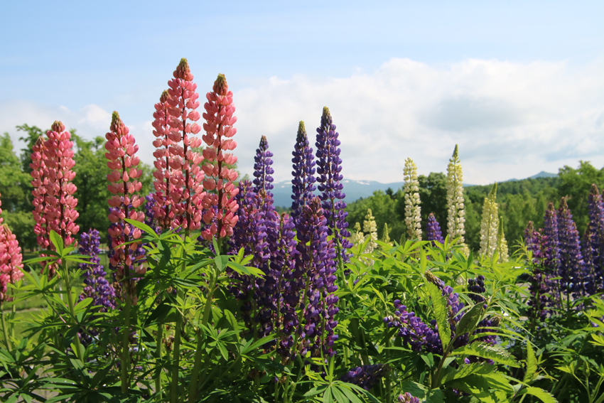 - 色とりどりのルピナスがキレイです少し薄いですが青空もこの風景を盛り立てています。