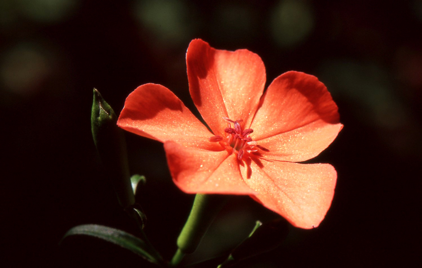 - フシグロセンノウに当たる日差しがキラキラ光るのを表現したそうです。背景を暗くしたのが良かったです。