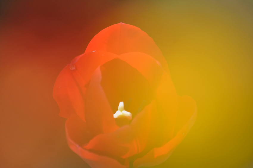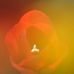 - チューリップを真上から花芯を撮っています。全体のフワッとしたボケは多重露出だそうです。イメージの作品です。