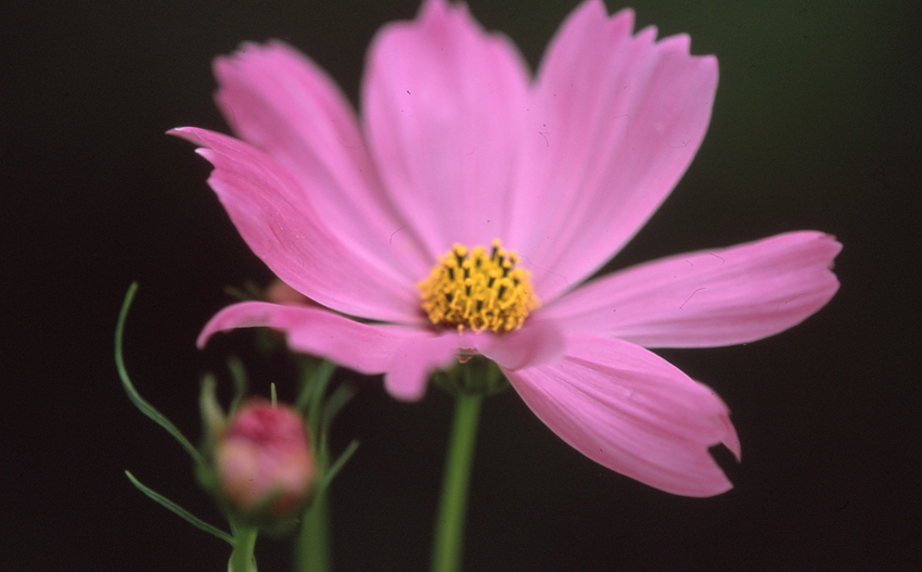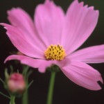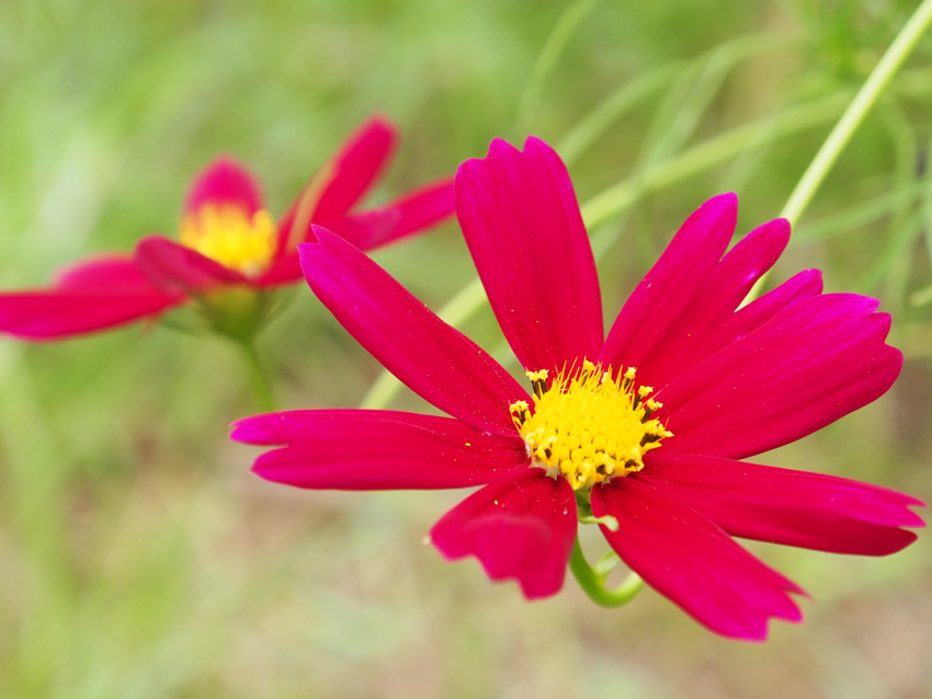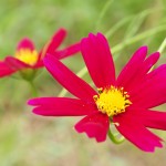 - 色と形のいいコスモスをボケを入れて撮っていますが少々大きくなりました。花の右が窮屈です。
