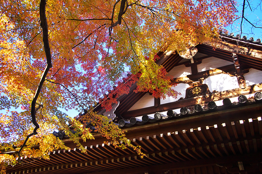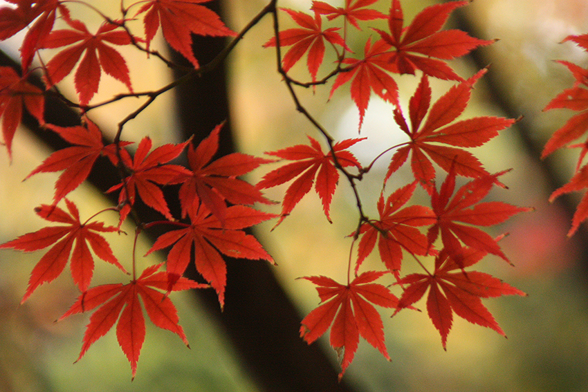 - 紅葉の後ろの木の幹を入れたのが良かったです。紅葉の赤と背景の黄色がいいバランスです。