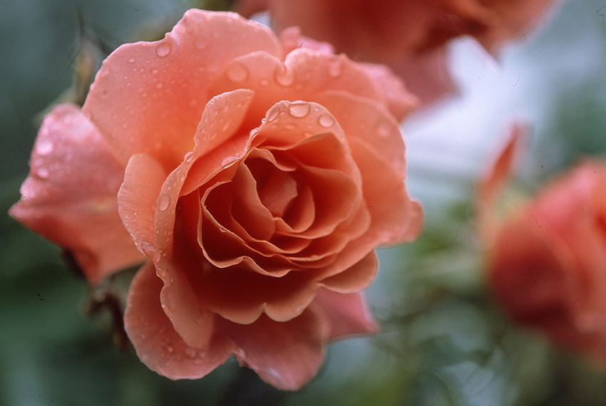 - いいバラです。雨の最中のバラだそうです。もっと引いて撮っていましたがトリミングしてみました。