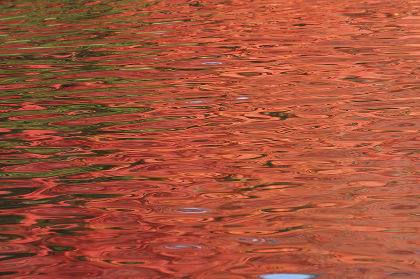 - 花は直接写っていませんが水面に映り込む紅葉のがさざ波でまるでアートです。美しいです。