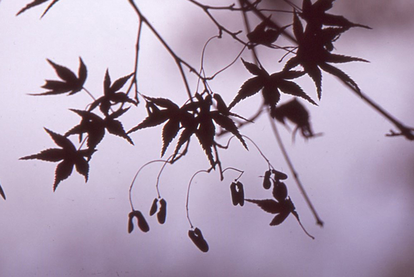 - モミジをシルエットで撮っている一風変わった表現です。モノクロで表現するのも方法です。