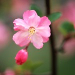 - 花とボケのバランスがいいです。赤いツボミが可愛い。カイドウはまとまって咲くので一輪だけはぐれて咲いているのをよく見つけました。