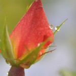 - バラのツボミにわずかな水滴が可愛いです。よく見つけました。大作ではないけれどこんな楽しみもあるんですね。