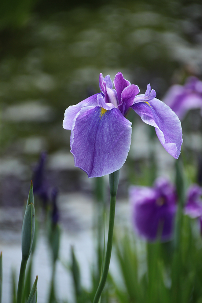 - 007波切静子いい花を見つけました。背景に水面がいい具合で入っています。ボケの花と脇役の蕾も効果的です。