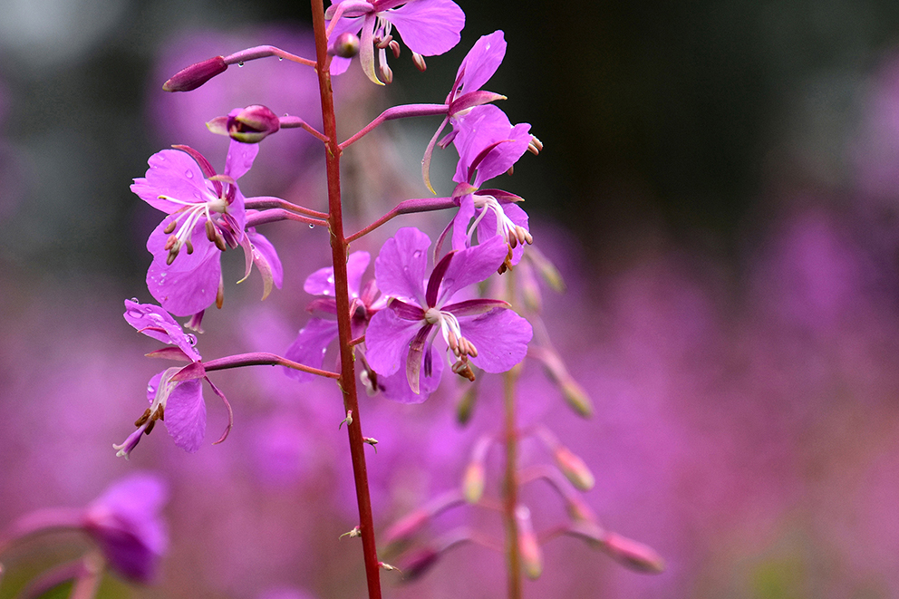 - 金剛倎子 ヤナギランの最盛期いちばんいいタイミングを撮りました。しかし狙い所が中途半端です。水滴がこの花には似合います。