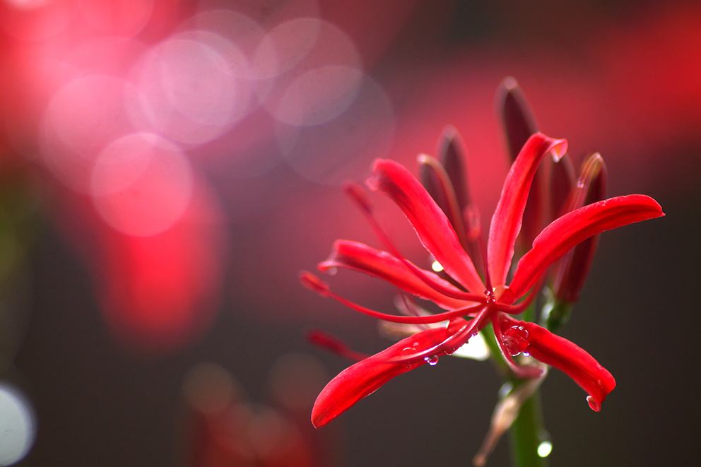 - 講師 宮本和義 ベランダに咲いたヒガンバナ、二つの鉢で演出しました。