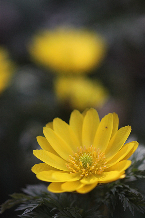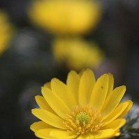 - 008波切静子 フクジュソウのボケを入れて上手くまとめています。手前に大きく入れたのがポイントです。