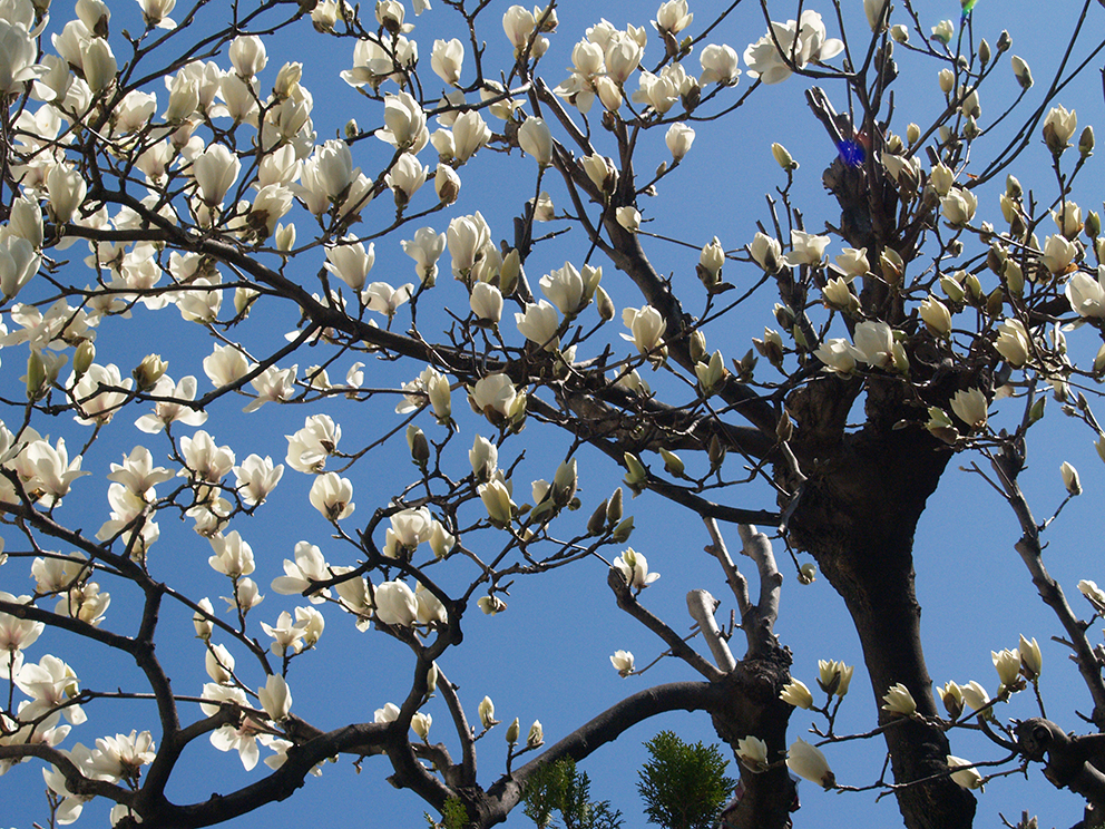 - 005鈴木良保 木の幹を入れて枝ぶりをうまくまとめています。ハクモクレンの咲くタイミングがいいです。