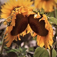 - 011辻村浩子 二人でおでこを合わせている様子のヒマワリ、ユーモラスな花を見つけました。